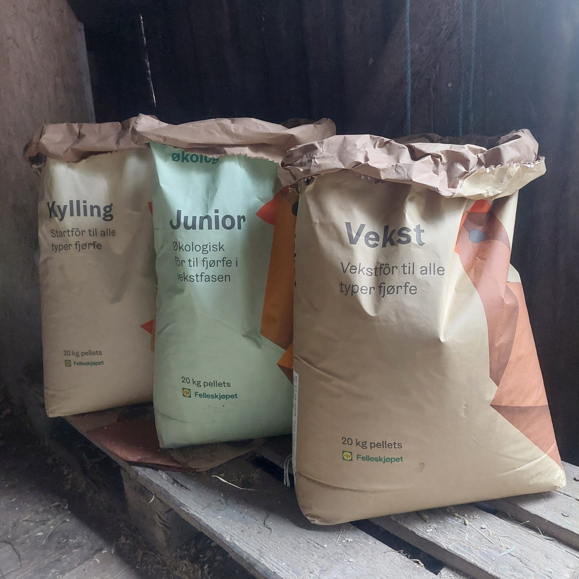 Kyllinger 0-8 uker får Fryd kylling, dette inneholder mest protein 23%. Dette trenger kyllinger fra starten av. Fra de er 8 uker blander jeg gjerne inn litt Fryd junior og Fryd vekst gradvis fram til 12 uker.