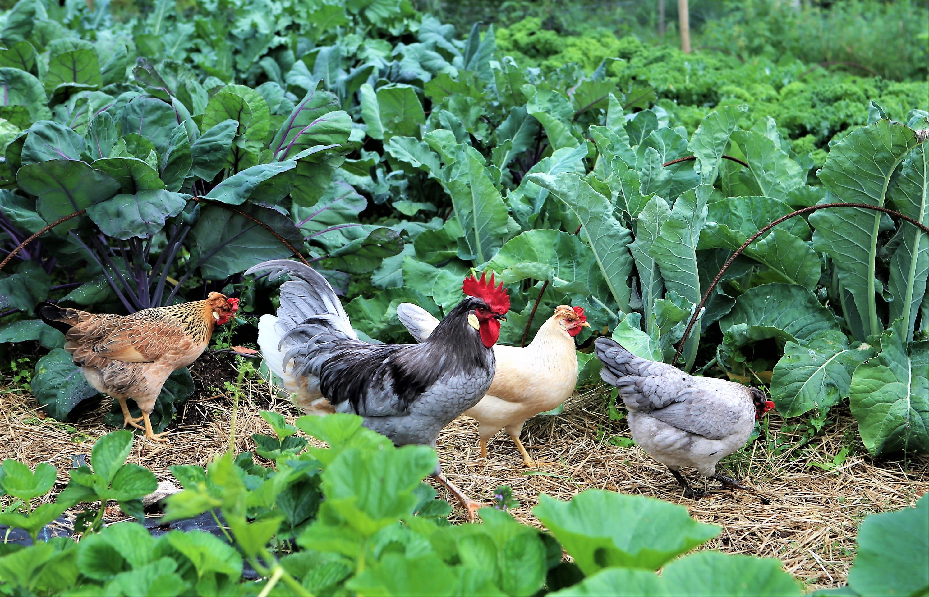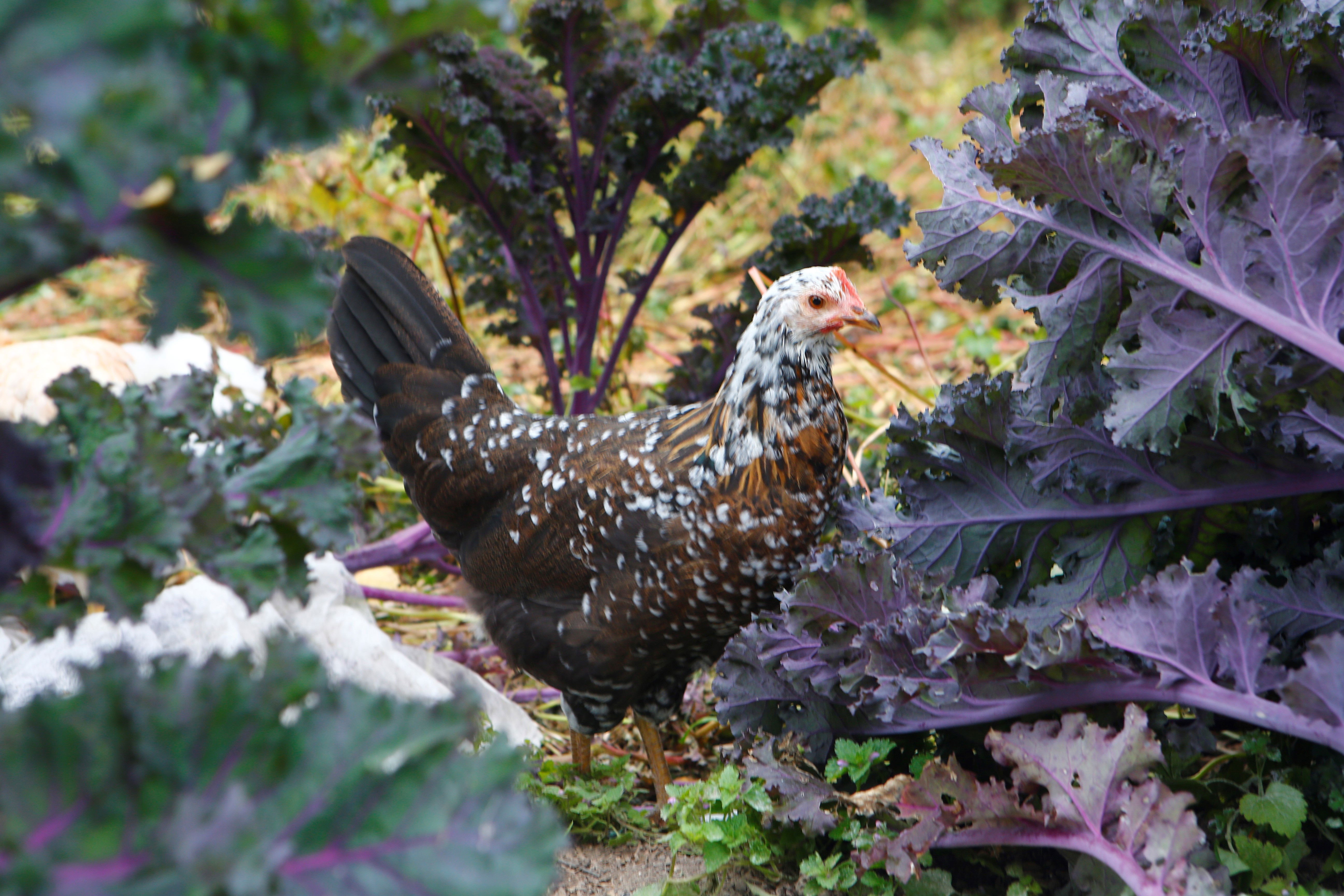 De viktigste grønnsakene jeg dyrker som også hønsa kan spise er grønnkål, svartkål, ev hodekål, gresskar, squash, rødbeter, gulrot, jordskokk, salat, spinat mm