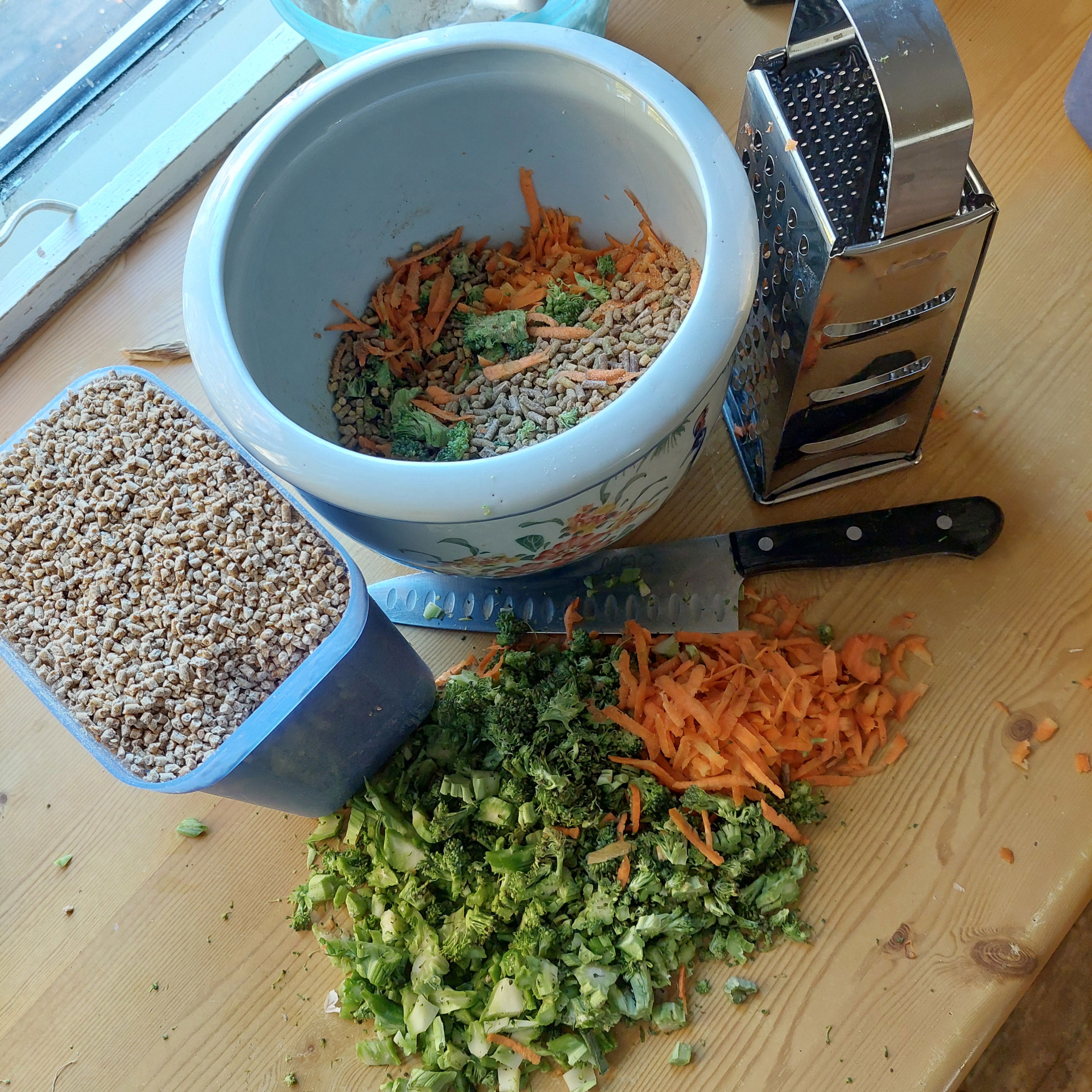 Jeg gir også mineraler og vitaminer utenom, jeg bruker naturlige mineraler Hefe fra Mineralexpressen og Bjørka mineralstein fra FK sistnevnte fungerer som kråsstein. De får også med jevne mellomrom Verm-x som som inneholder urter som er forebyggende mot innvollsnyltere.